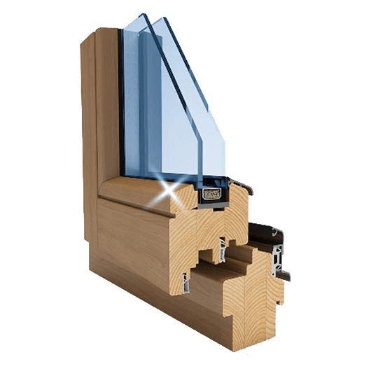 | Bau: | Standardprofil in einer Einzelrahmenkonstruktion Holzmassiv Rahmendicke 68 mm In beliebiger Form und Größe des Fensters |